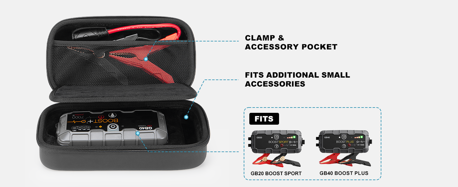 Customize Fit: Hard Shell Carrying Case Compatible With the GB20 and GB40 UltraSafe Lithium Jump Starter,Jumper Starter & Jumper Cables have a dedicated slot in the case and thoroughly protected