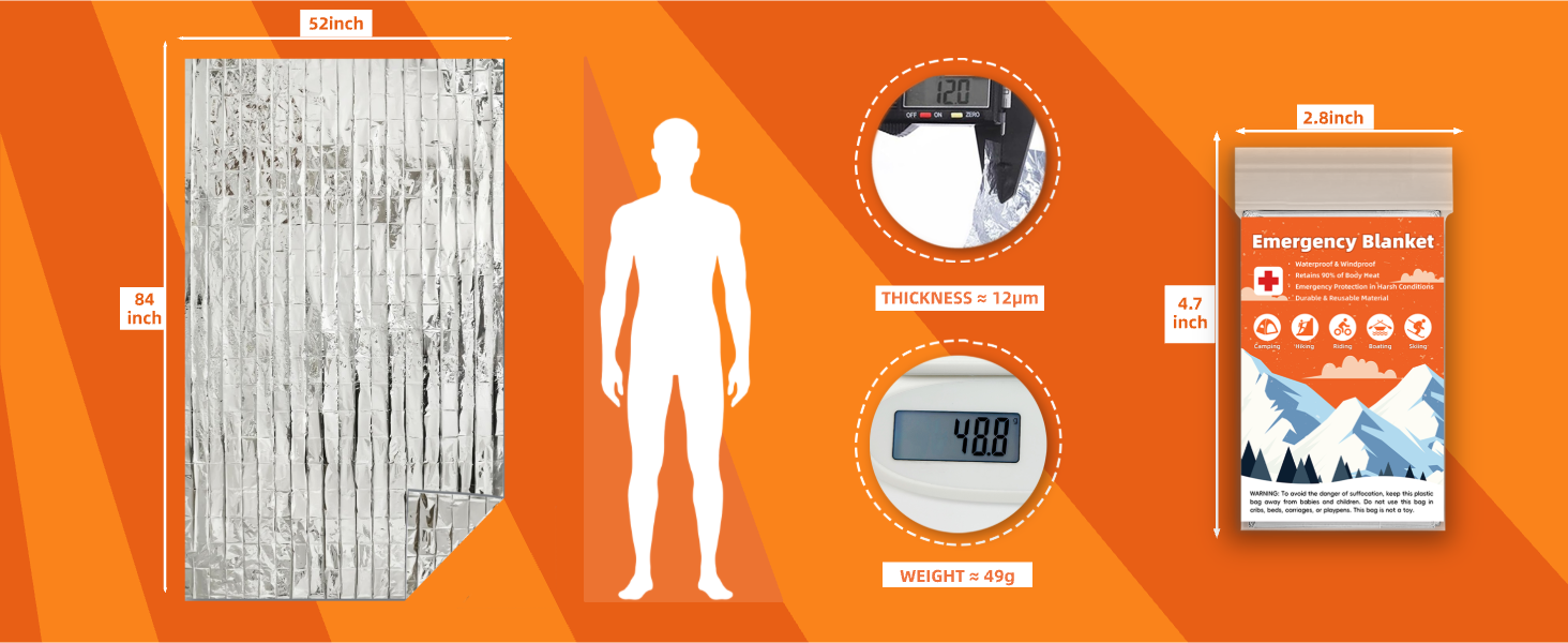 WIDELY USED IN EMERGENCY SITUATIONS: This survival blanket is commonly used in outdoor activities (such as hiking, camping, mountaineering), disaster rescue operations, military training, and first aid kits. It is considered an essential survival tool in many emergency scenarios.